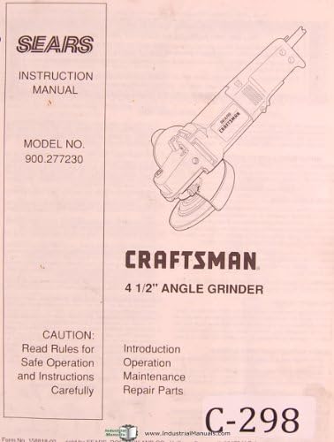 Craftsman 900 277230 4 1 2 Angle Grinder Operation Maintenance And Repair Parts Manual Craftsman Amazon Com Books